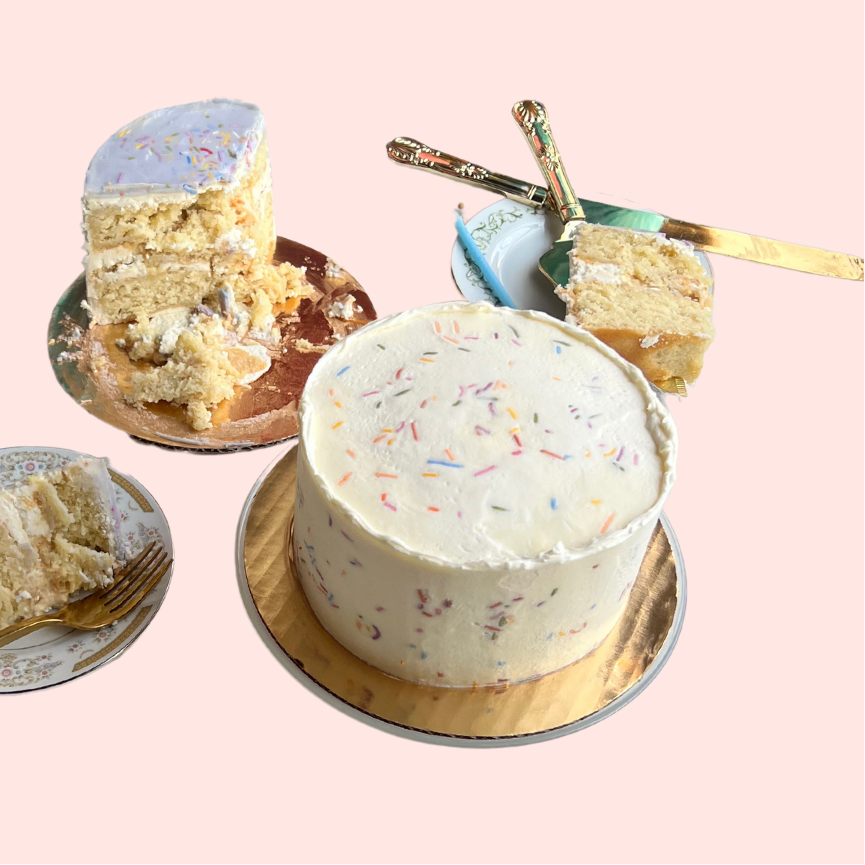 A minimalist, elegant cake with textured buttercream edges. The simple design stands beautifully on its own or serves as the perfect base for adding your own fresh flowers and decorative toppings.